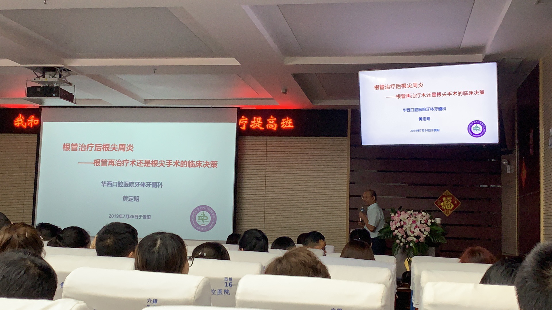 2019.7.26 —7.28 速航協辦的2019年現代根管治療提高班在貴陽市口腔醫院新院區圓滿結束。本次培訓班有幸邀請到了四川大學華西口腔醫學院黃定明教授、高原副教授,中山大學光華口腔醫學院蔣宏偉副教授、童忠春博士四位業內大咖作為演講嘉賓,課程采用理論與實操結合的方式進行現場教學。